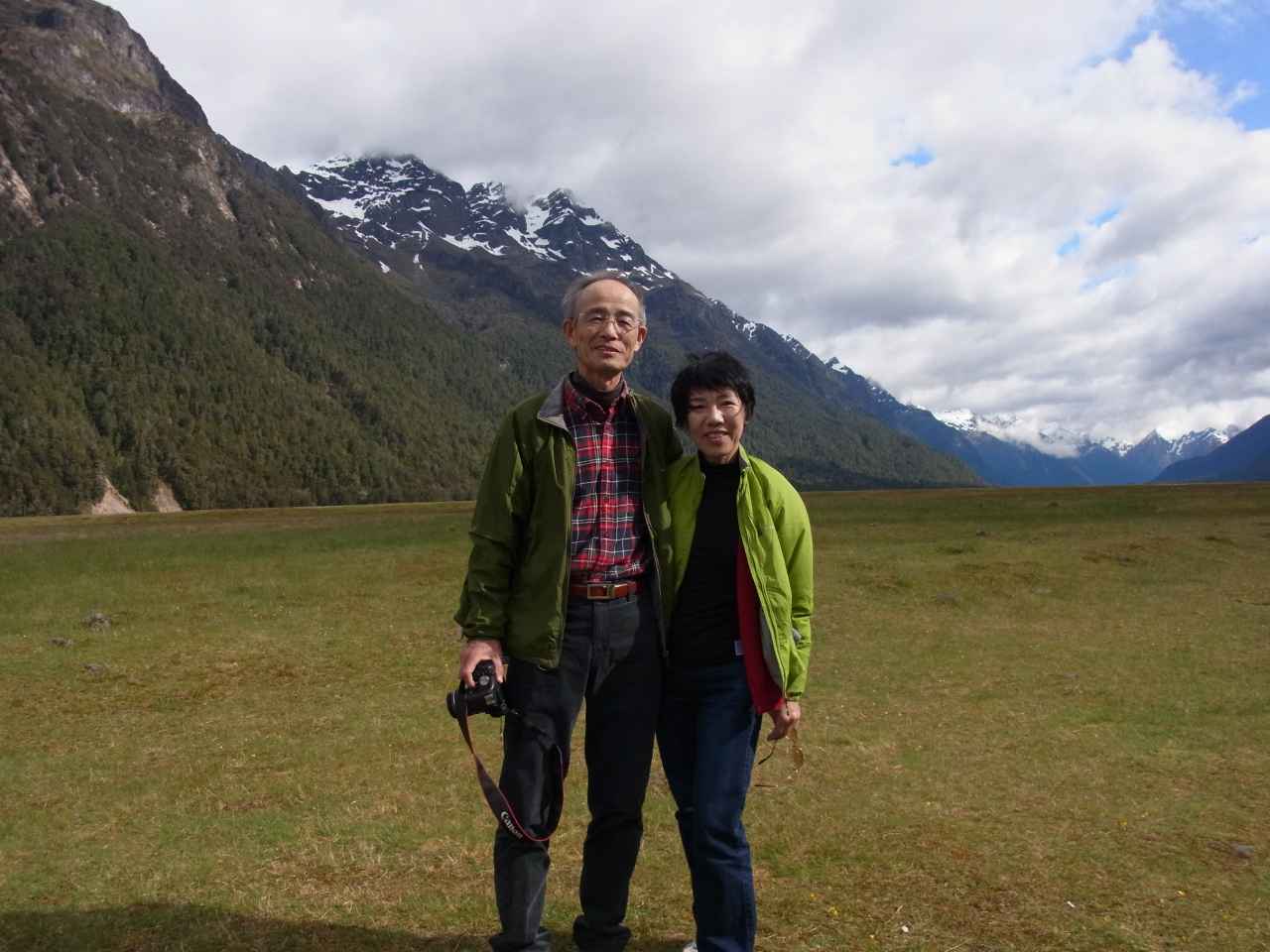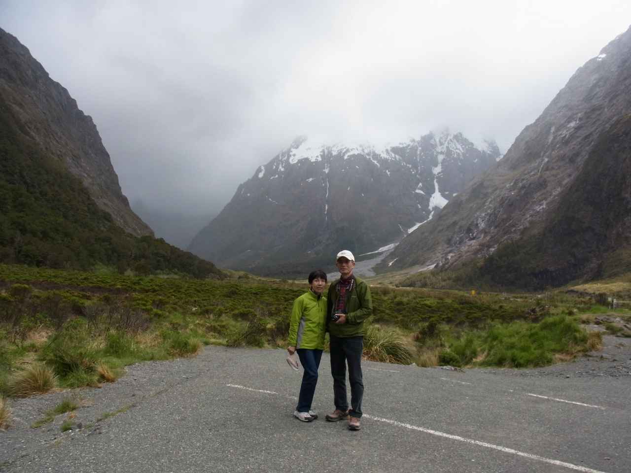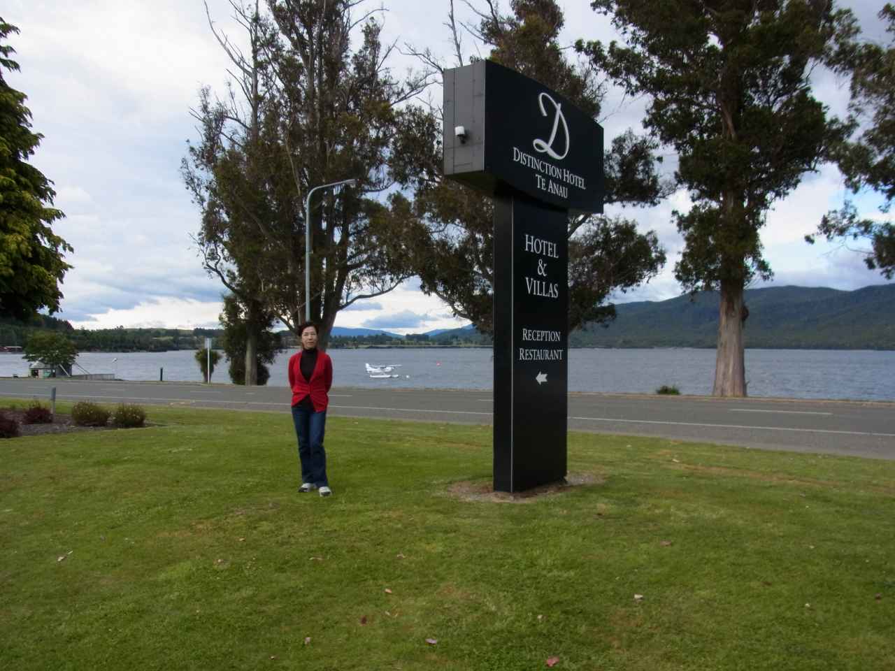 出発前テ・アナウ湖畔のホテルの庭で