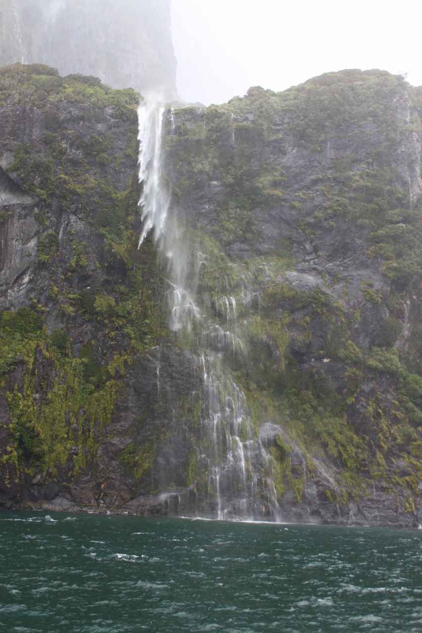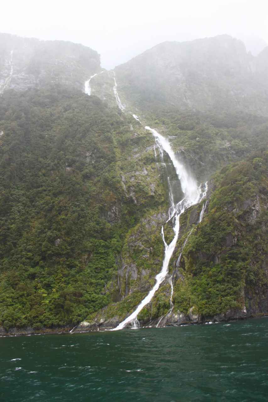 雨のミルフォードサウンドだったが、そのおかげで水量豊富な無数の滝の美しさも目にすることができた