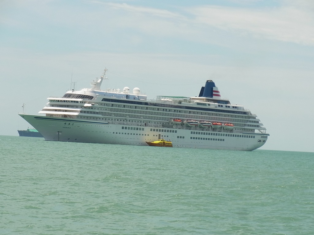 飛鳥Uへ帰還中の小型船から豪華客船が二隻見えた