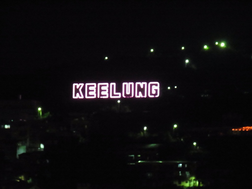 | 基隆出港時に正面の山に光る文字 |
