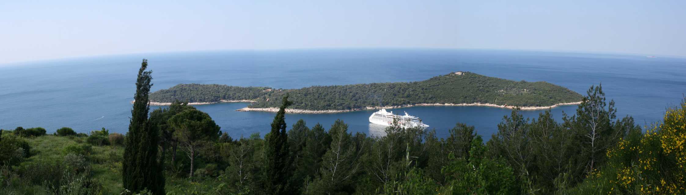 私たち夫婦3組と添乗員さんとガイドさんの8人はまず貸し切りの船でヌーディストビーチで有名なロクロム島クルーズへ 本来の目的は海からドブロヴニクの街、特に城壁を眺めること 船はゆったりと街の沖合を進み、存分に街の眺望を楽しんだ そして次はヌーディストビーチ 果たしてヌーディストはいるのか? 一瞬のシャッターチャンスをものにできた