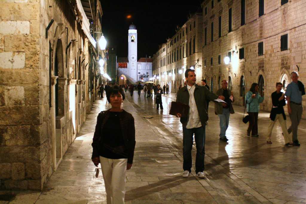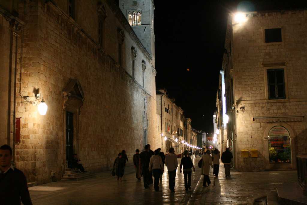 私たち夫婦はここから皆さんと別行動 夜の旧市街を散策 ライトアップされた城壁を見ながらピレ門から入り、プラツァ通りを経て旧港まで 夜景を楽しんだ 聖ブラホ教会正面のステンドグラスは内部から照明されており、初めての光景だった