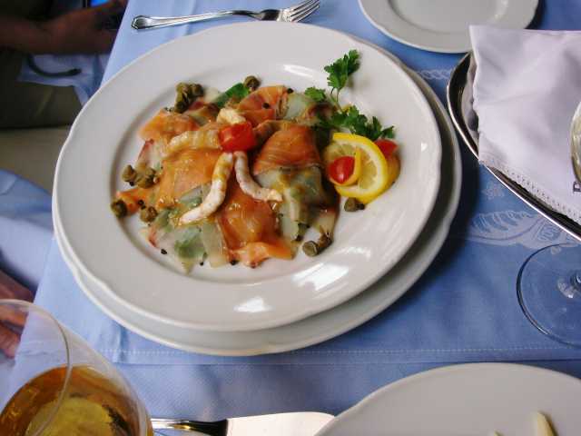 (ドブロヴニクの5星レストランのコース料理をテラス席にて)