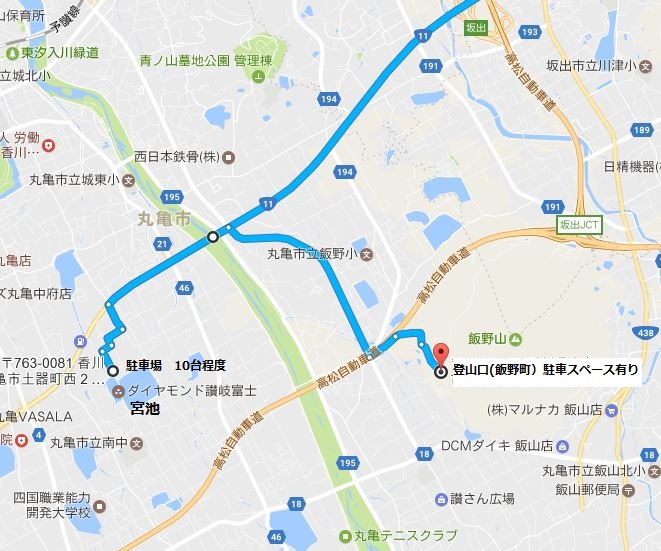 松から国道11号線を西へ 丸亀市に入り土器川を過ぎて1km弱の信号を右折