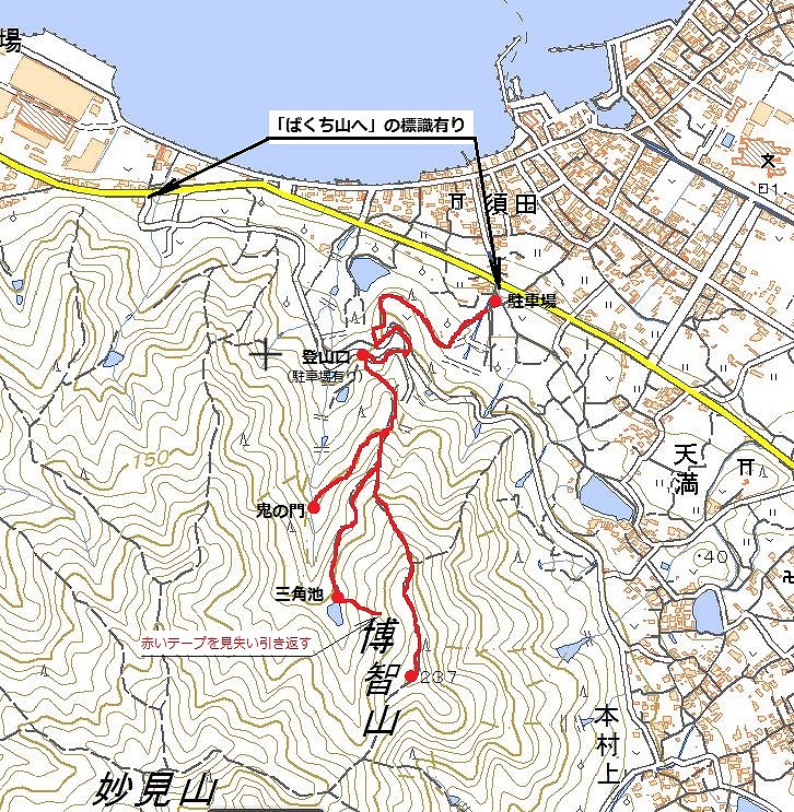 次は博智山 国道沿いにも標識が整備されている が、その標識から登山口までの案内がなくて困った