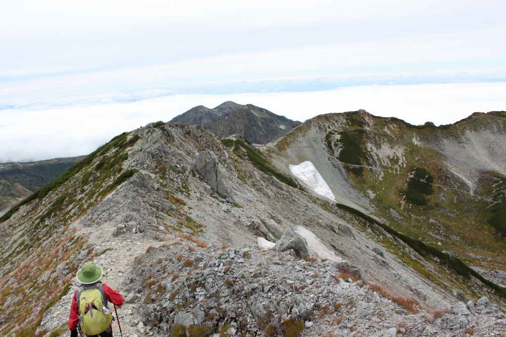冨士ノ折立まで来ると、もと来た道を帰るピストンルートよりはこのまま完全縦走する